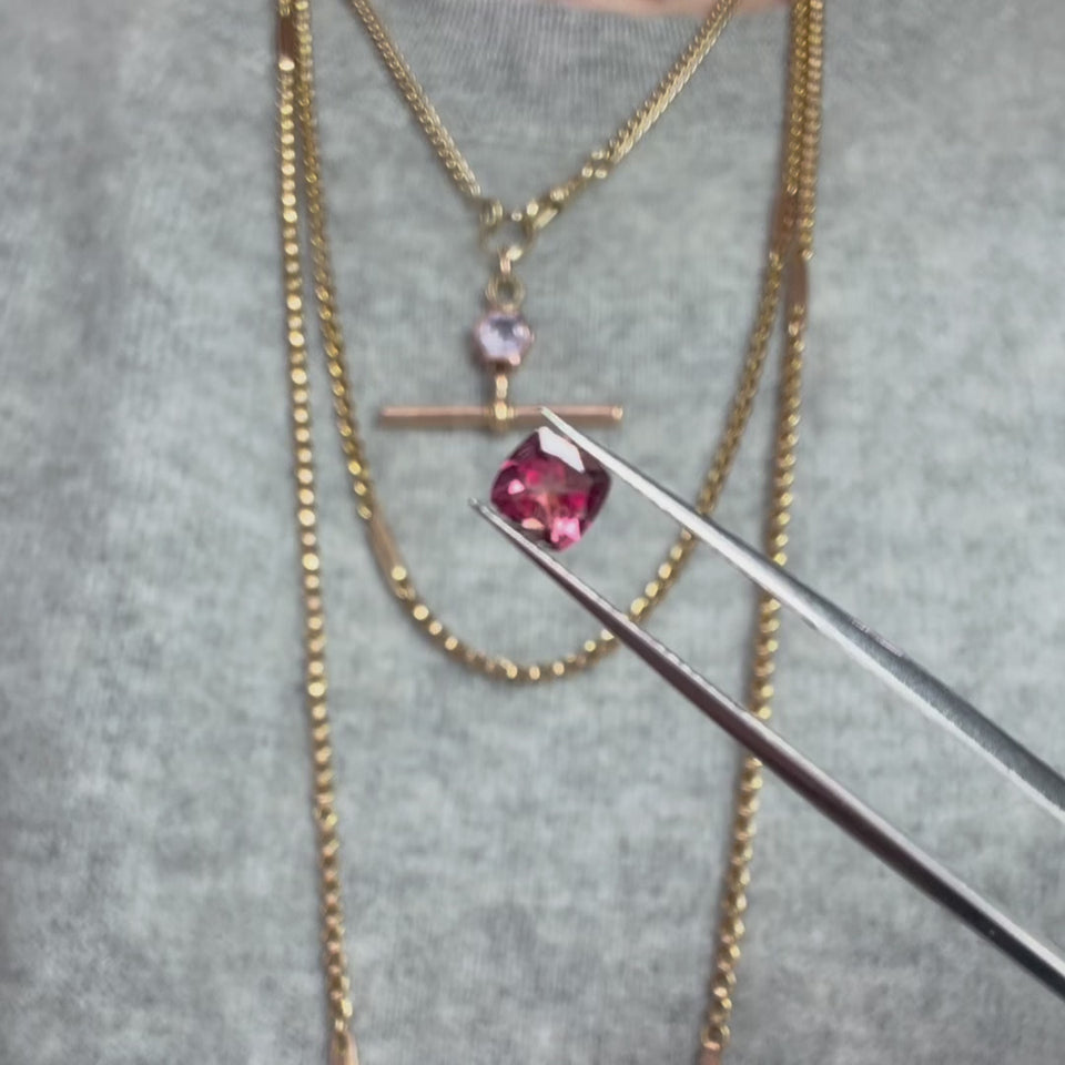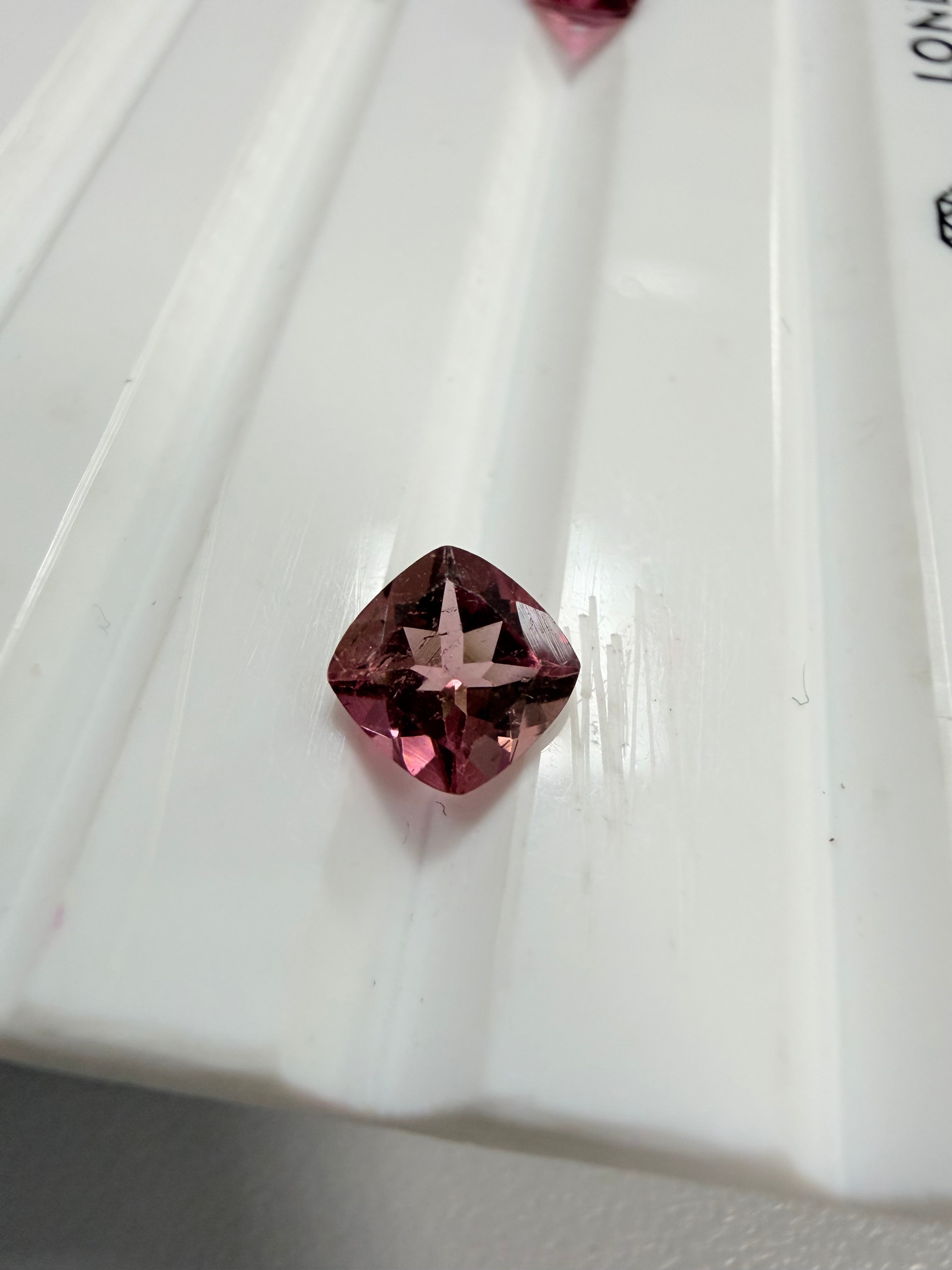 We have selected these cushion cut peachy-hued pink tourmaline, which have beautiful depth.