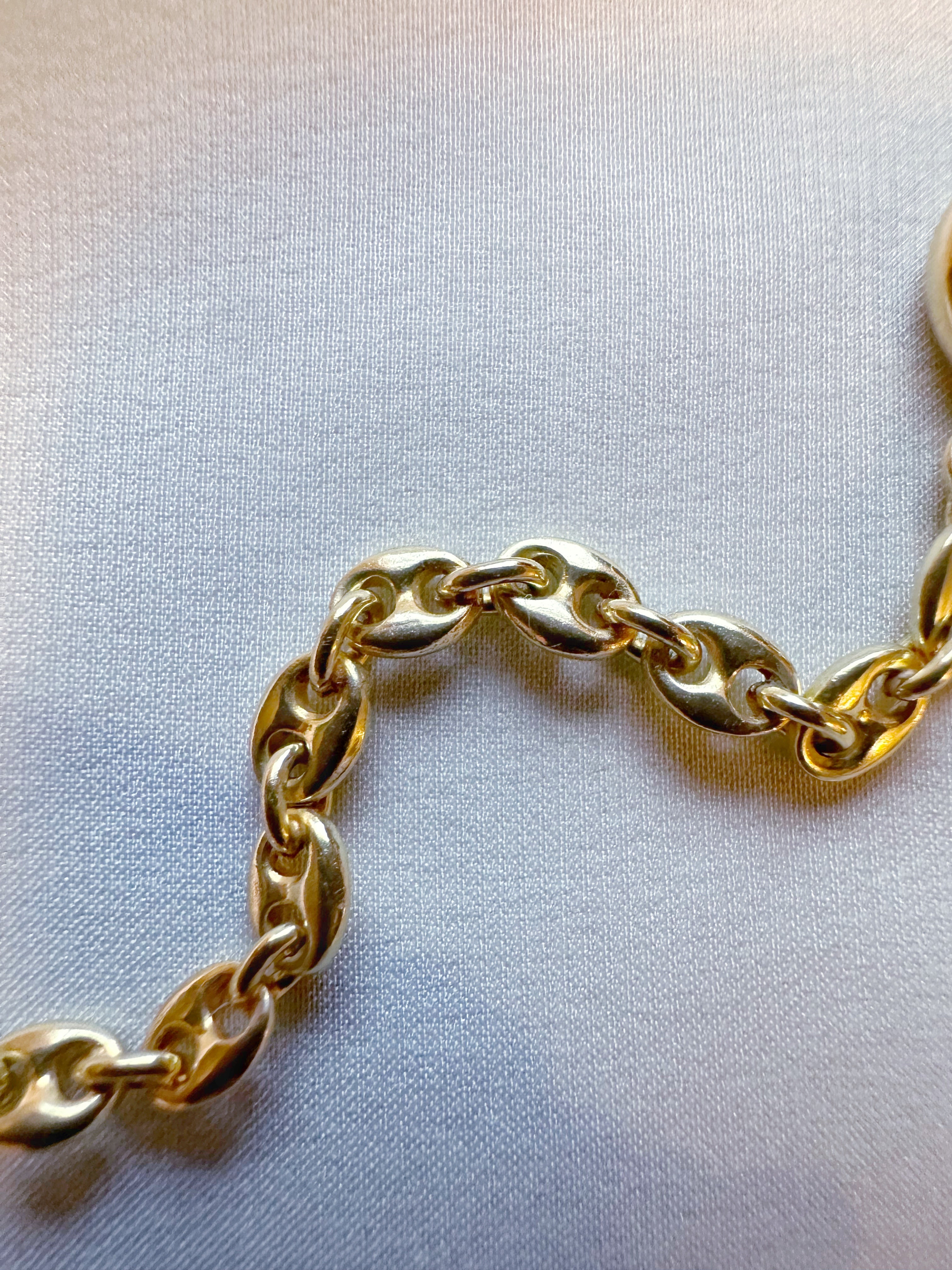 A beautiful section of vintage mariner chain - each mariner link is solid in contstuction - ending with a perfectly matched chubby vintage bolt ring (measuring 10.3mm diameter)