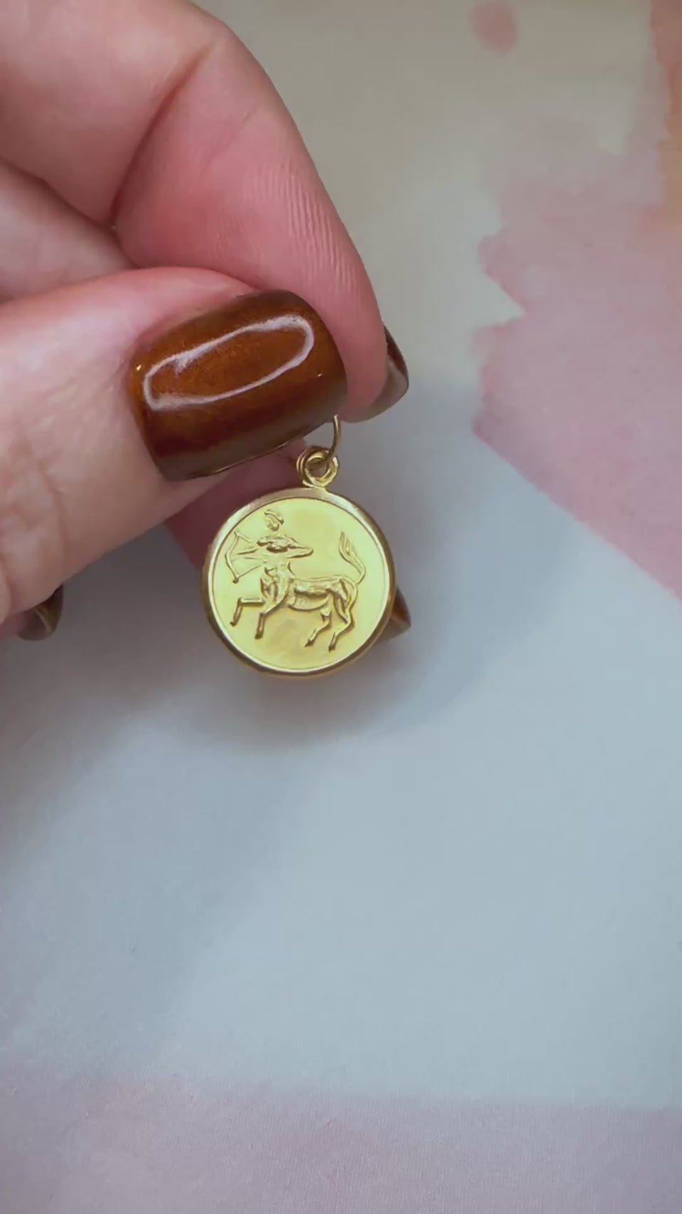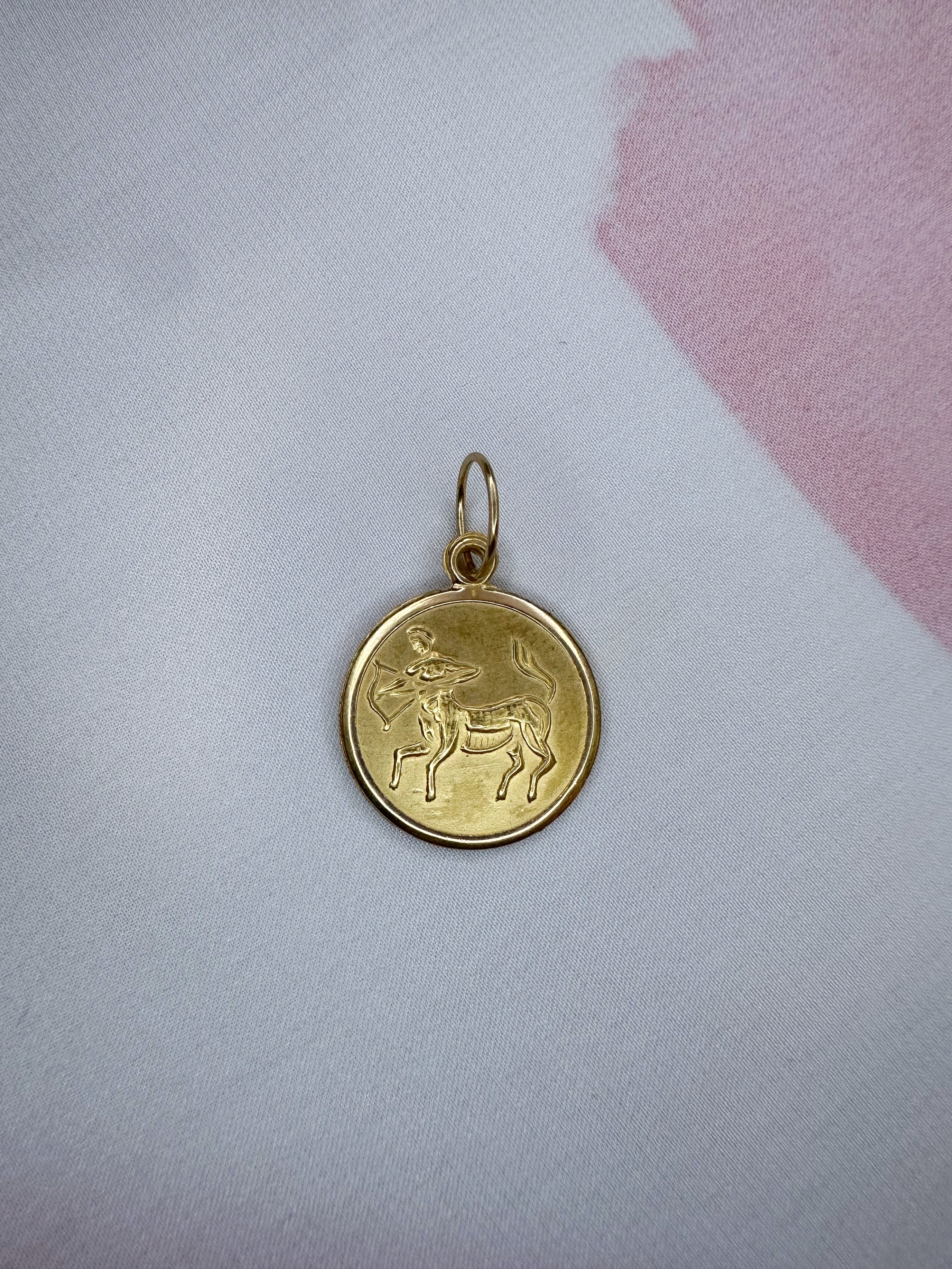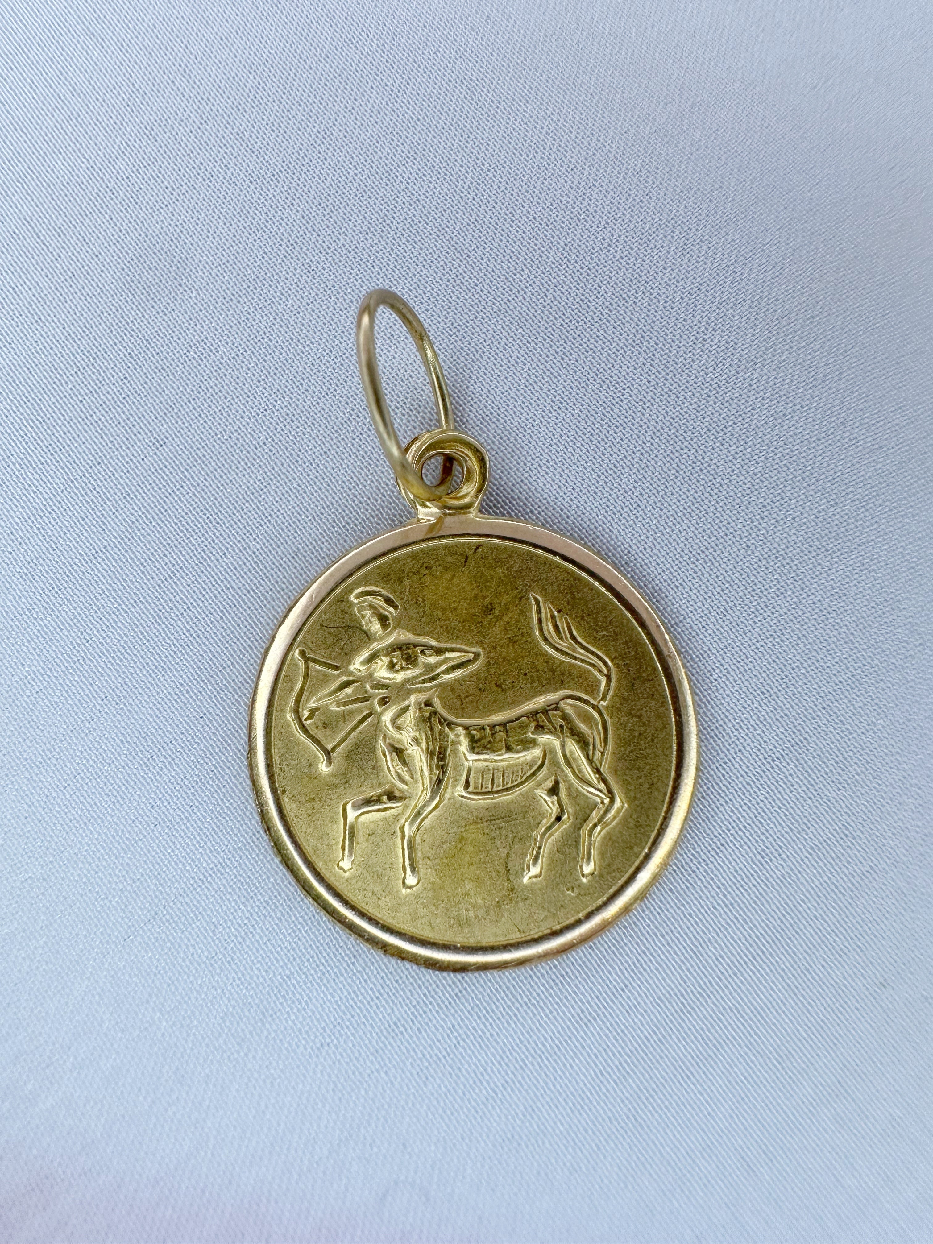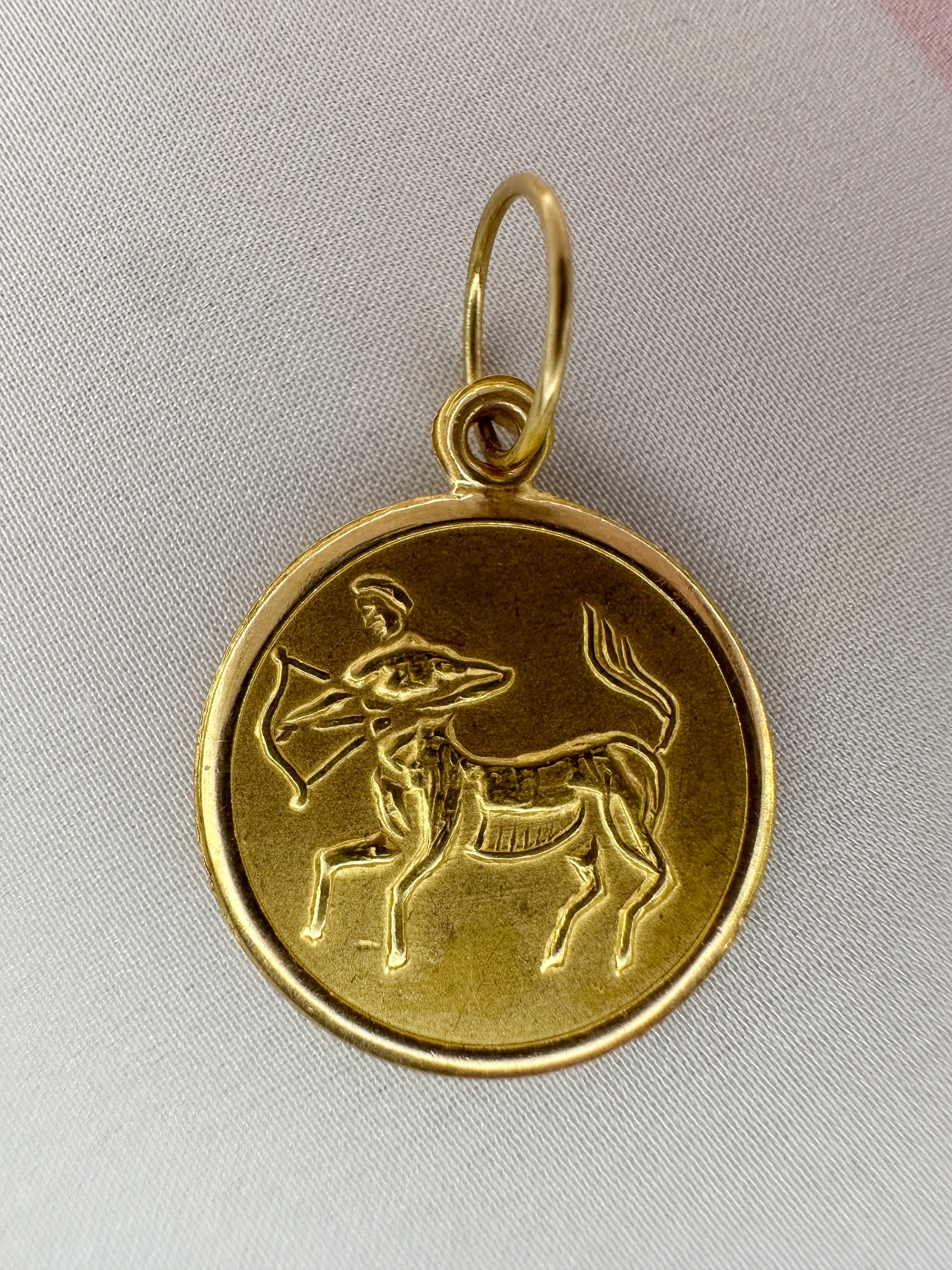 A cutie of a high carat Sagittarius token. The gold tone is rich and this vintage piece has a gorgeous matte finish, while the outer rim is high polish.